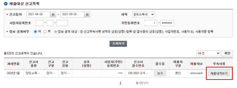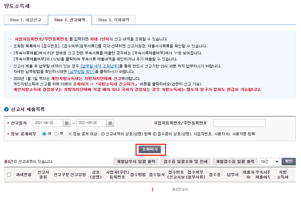 19. 세목, 주민등록번호 입력 후 '조회하기' 클릭