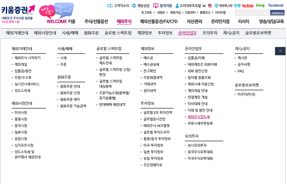 [키움증권] 해외주식 - 온라인업무 - 해외주식양도세 - 해외주식양도세 계산내역