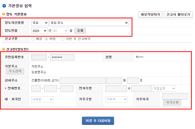 6. 양도 기본 정보 입력, 신고인 정보 입력