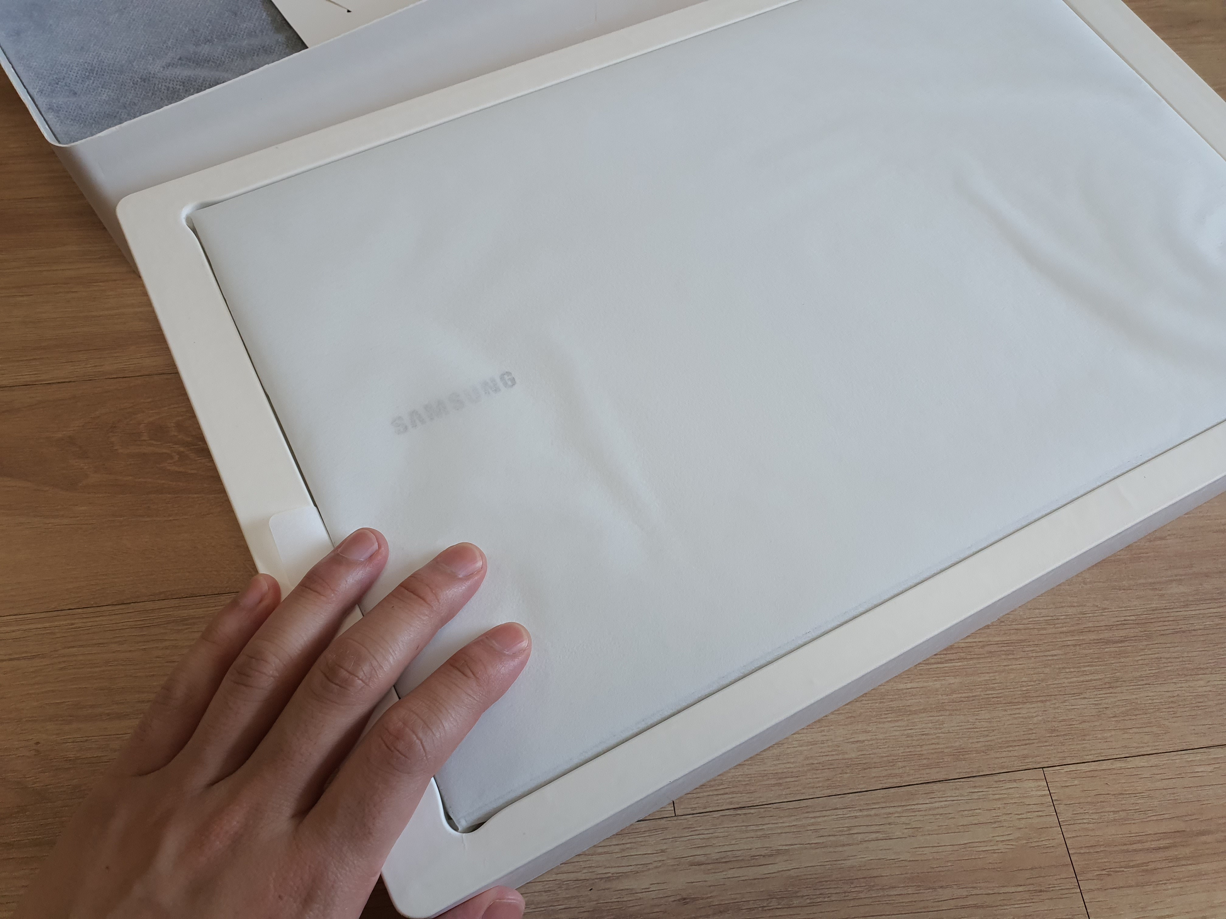 포장을 벗겨내면 비로소 갤럭시북 이온2의 실물이 나타난다.