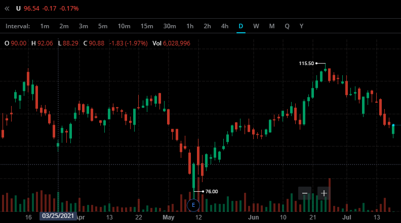 글쓴이가 상당한 비중을 두고 있는 유니티에도 하락이..