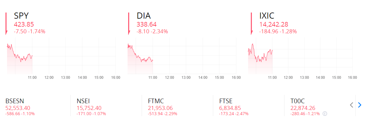 빅테크, 중소형주, 친환경주, 태양광, 에너지 등등 구분 없이 전반적으로 모든 주가가 하락하는 날이었다.