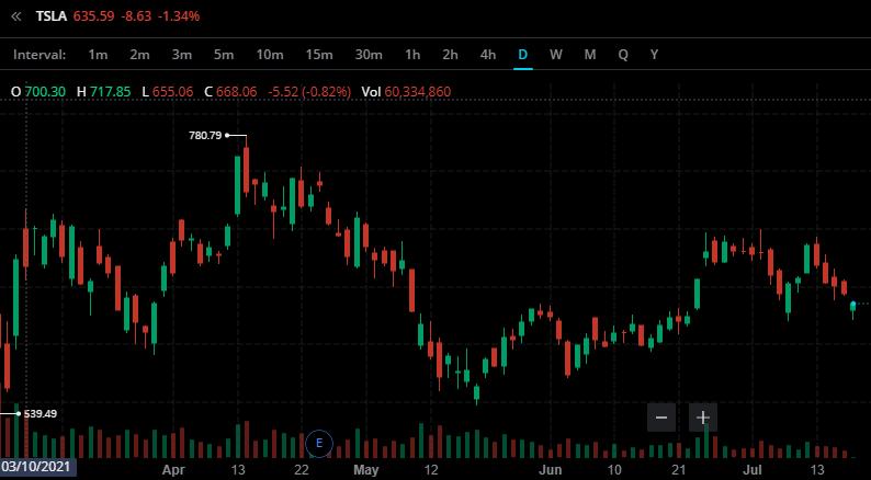 조금 오를기미가 보이다가 다시 빠지는 테슬라