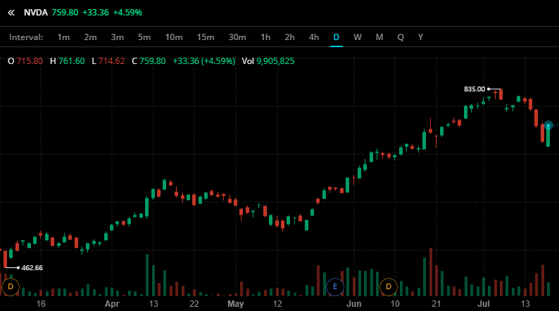 급락선으로 출발했던 NVIDIA (엔비디아는 하락으로 출발했다가 장 시작 30분만에 양전하고 1시간 만에 주가를 끌어올렸다.)