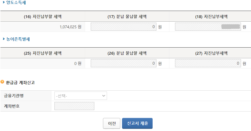 최종 확인 페이지다. 금액에 이상이 없다면 '신고서 제출'을 누른다.