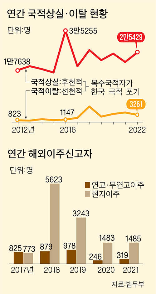 국적 상실 및 이탈은 지속적으로 늘어나고 있다.