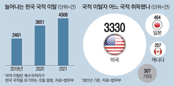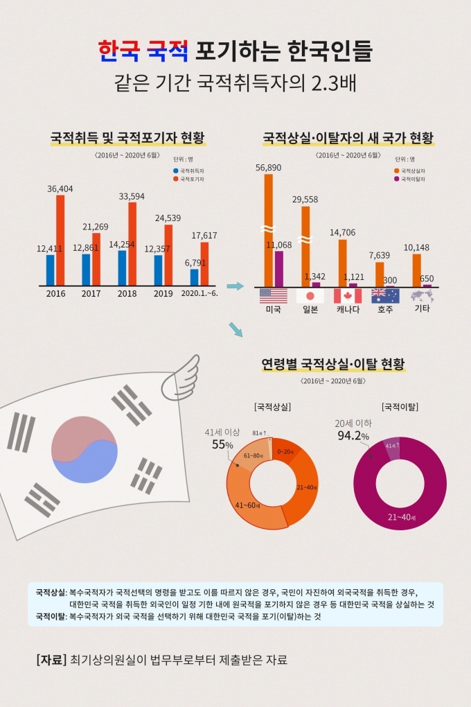 대한민국은 국적취득자에 비해 국적포기자가 많은 나라다.