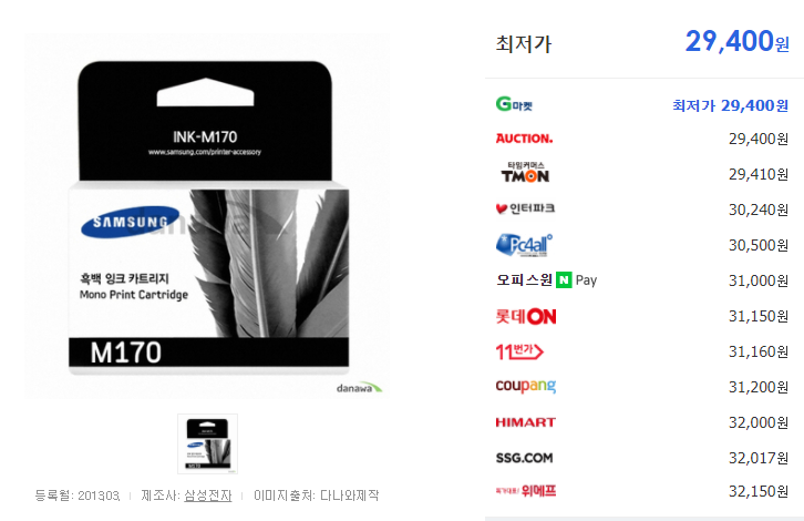 잉크: 29000원/190장 = 장 당 152원