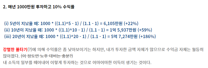 지난 포스팅에서 투자를 당장 시작해야하는 이유를 얘기하면서 복리 효과를 직접 계산해보았다.