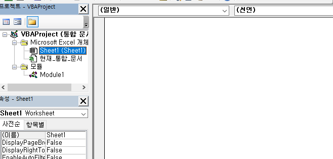 1. Alt + F11을 눌러 VBA 에디터 창을 연다.