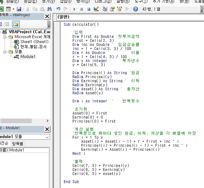 <VBA 프로그래밍으로 복리 계산기 만들기>