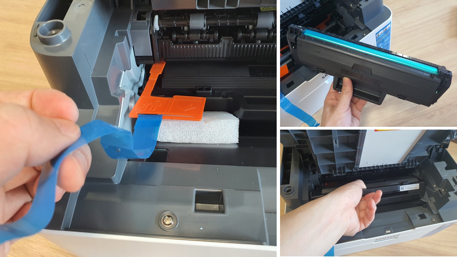 토너를 빼서 보호재를 제거하고 다시 토너를 끼우는 작업이 반드시 필요하다.